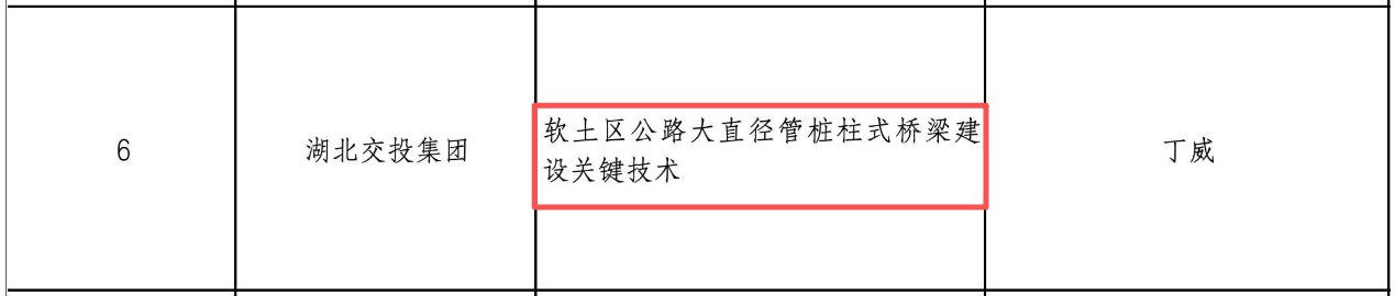 其中,湖北交投集团“面向软土区公路的大直径管桩柱式桥梁建设关键技术”入选《重点领域科技攻关需求》榜单。