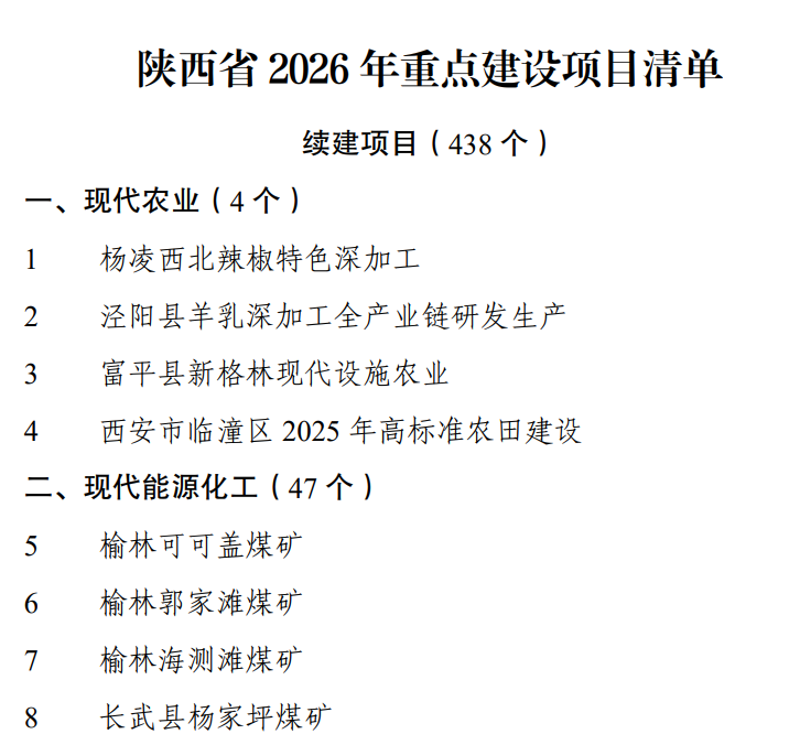3月25日,陕西省发改委发布《陕西省2026年重点建设项目清单》。